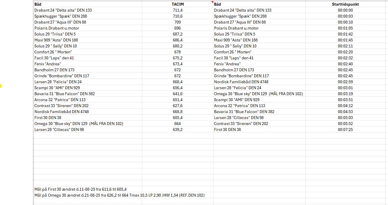 EFTER HVER SEJLADS ÆNDRES STARTTIDERNE SIG FOR DE 3 FORRESTE OG DE 2 BAGERSTE BÅDE.